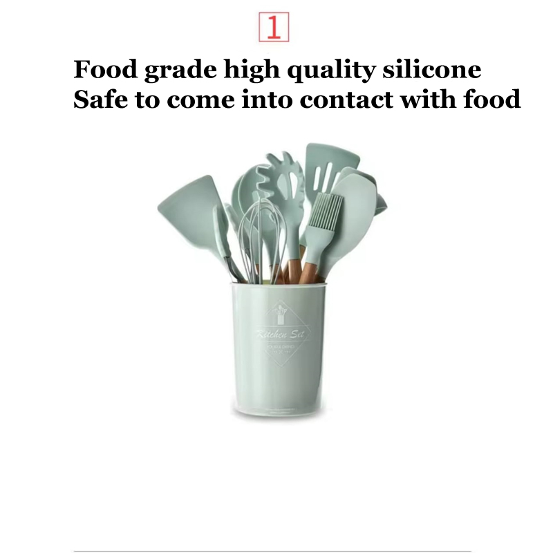 1.Material de silicona premium:Hecho de silicona resistente al calor de alta calidad, este juego de utensilios de cocina no dañará sus utensilios de cocina.El material resistente garantiza una fácil limpieza y un uso duradero, lo que los convierte en una opción confiable para todas sus necesidades de cocina.