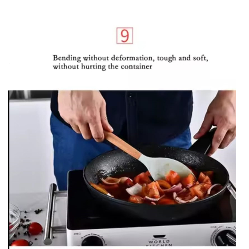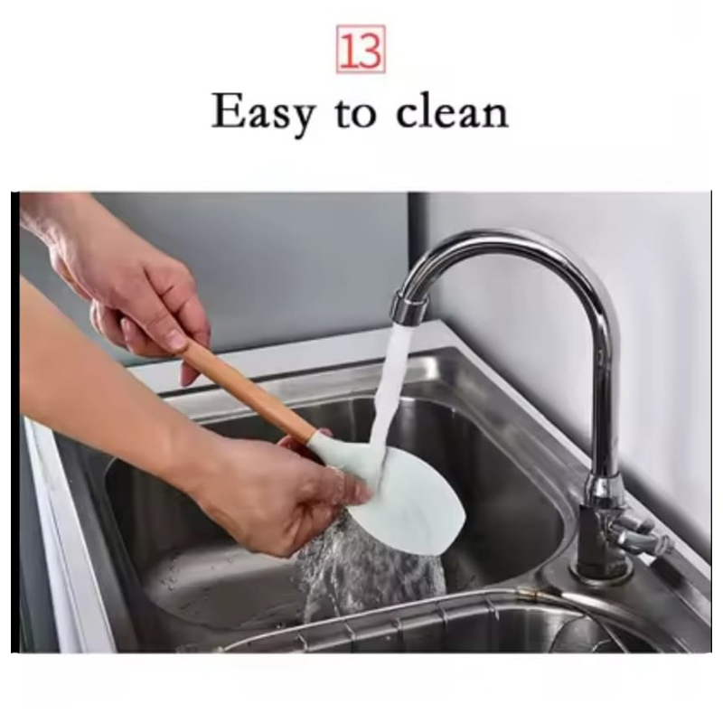 5.Conveniente para todas las necesidades de cocina:Ya seas un principiante o un chef experimentado, este juego de espátulas antiadherentes cumple con diversos requisitos de cocción.La combinación de espátulas, cucharas y otras herramientas garantiza que tenga el utensilio adecuado para cualquier receta, mejorando su eficiencia culinaria.