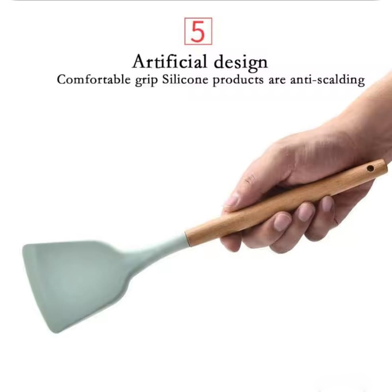 Set de Utensilios de Cocina de Silicona con Mangos de Madera – Resistentes al Calor y Antiadherentes