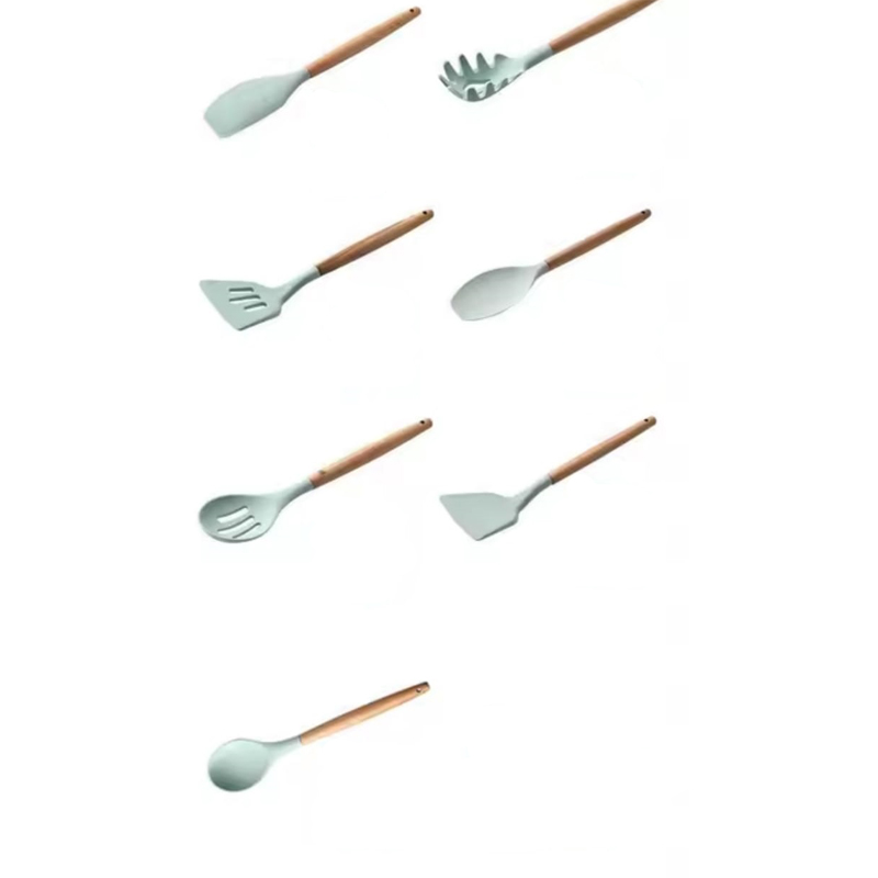 Prepara tus comidas favoritas con estilo y comodidad con este set de utensilios de cocina de silicona. Fabricados con material de silicona resistente al calor y mangos de madera, estos utensilios no dañan tus ollas y sartenes antiadherentes, garantizando durabilidad, y un diseño moderno que combina perfectamente con cualquier cocina.