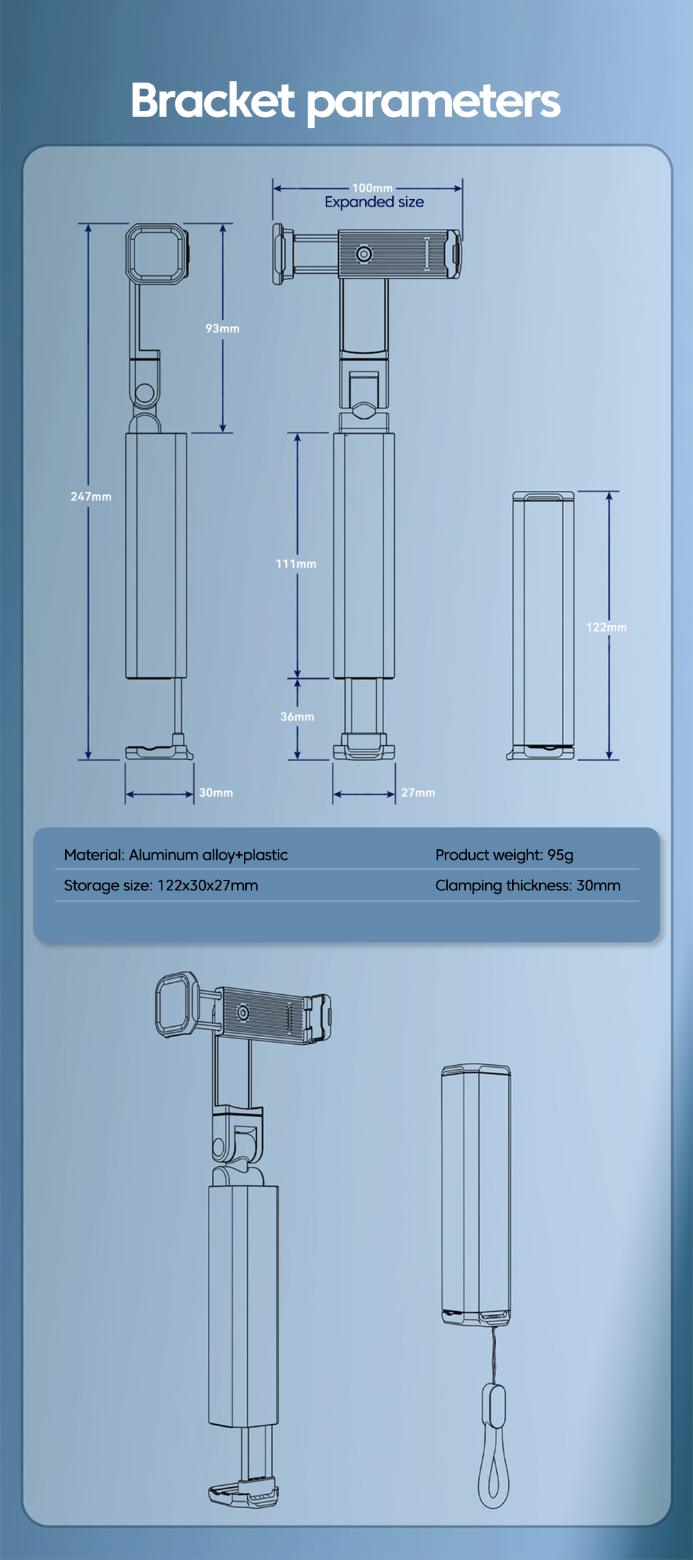 Función Q08: estabilización de vídeo/soporte para disparo horizontal y vertical/control remoto desmontable.