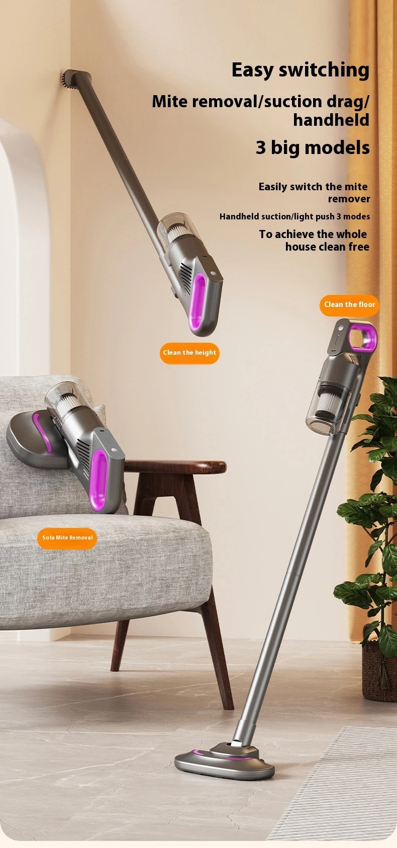 Aspiradora de mano portátil: eliminador de ácaros en múltiples superficies