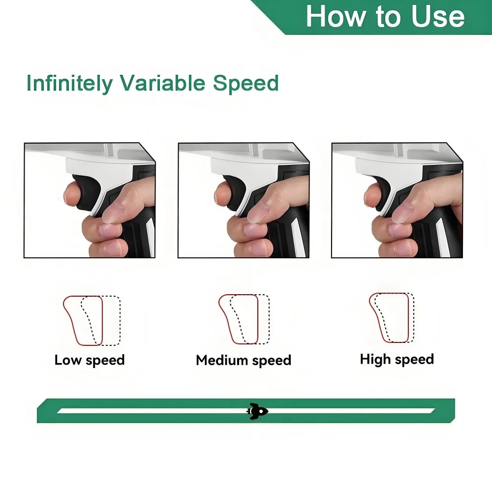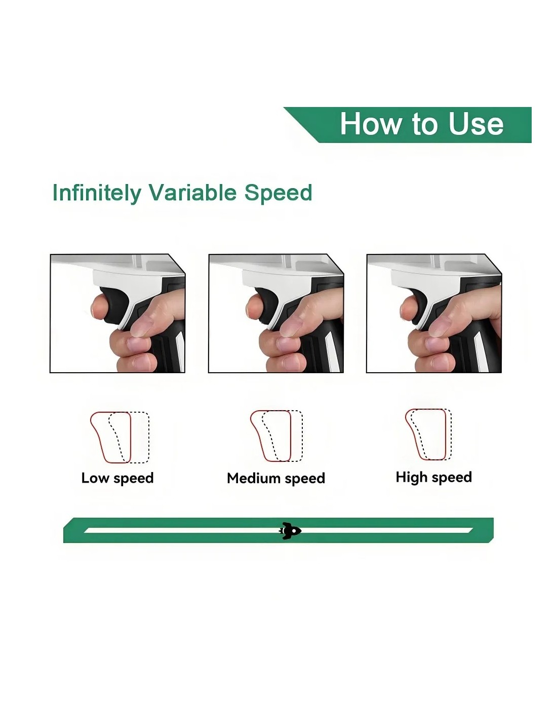 Fácil de usar: Operación sencilla con un mango ergonómico que proporciona un agarre cómodo. Funciona con batería de litio recargable de 48V/1200 mAh incluida.