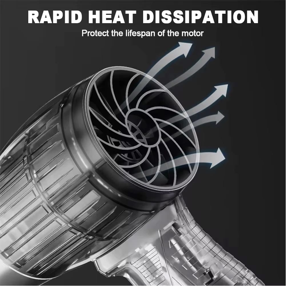 Secado eficiente: Potente motor que acelera el secado de superficies, ideal para tareas de limpieza rápidas en casa o mientras viajas.