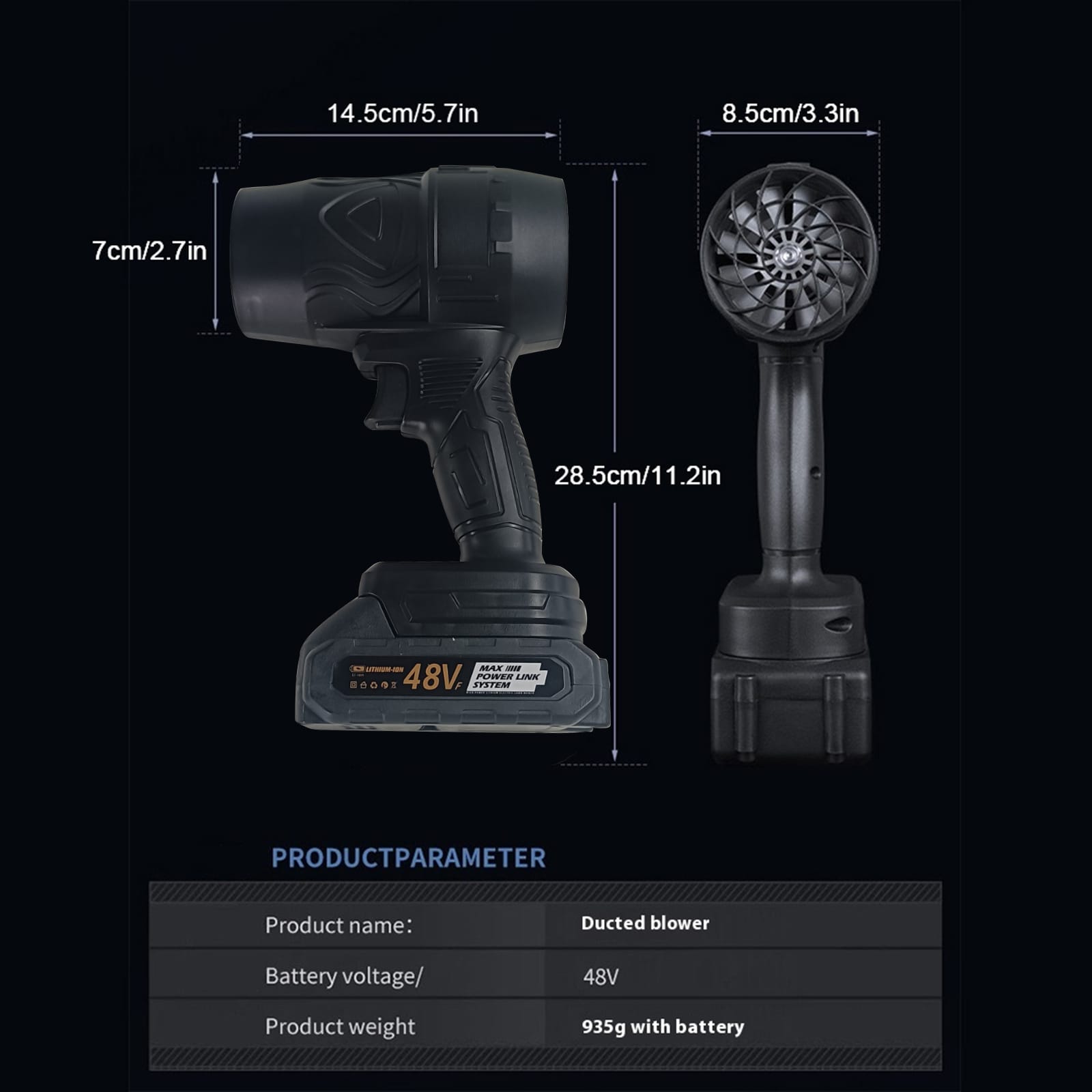 Funciona con batería de litio recargable de 48V/1200 mAh, ideal para limpiar polvo, residuos, grietas, teclados, automóviles, motocicletas y más.