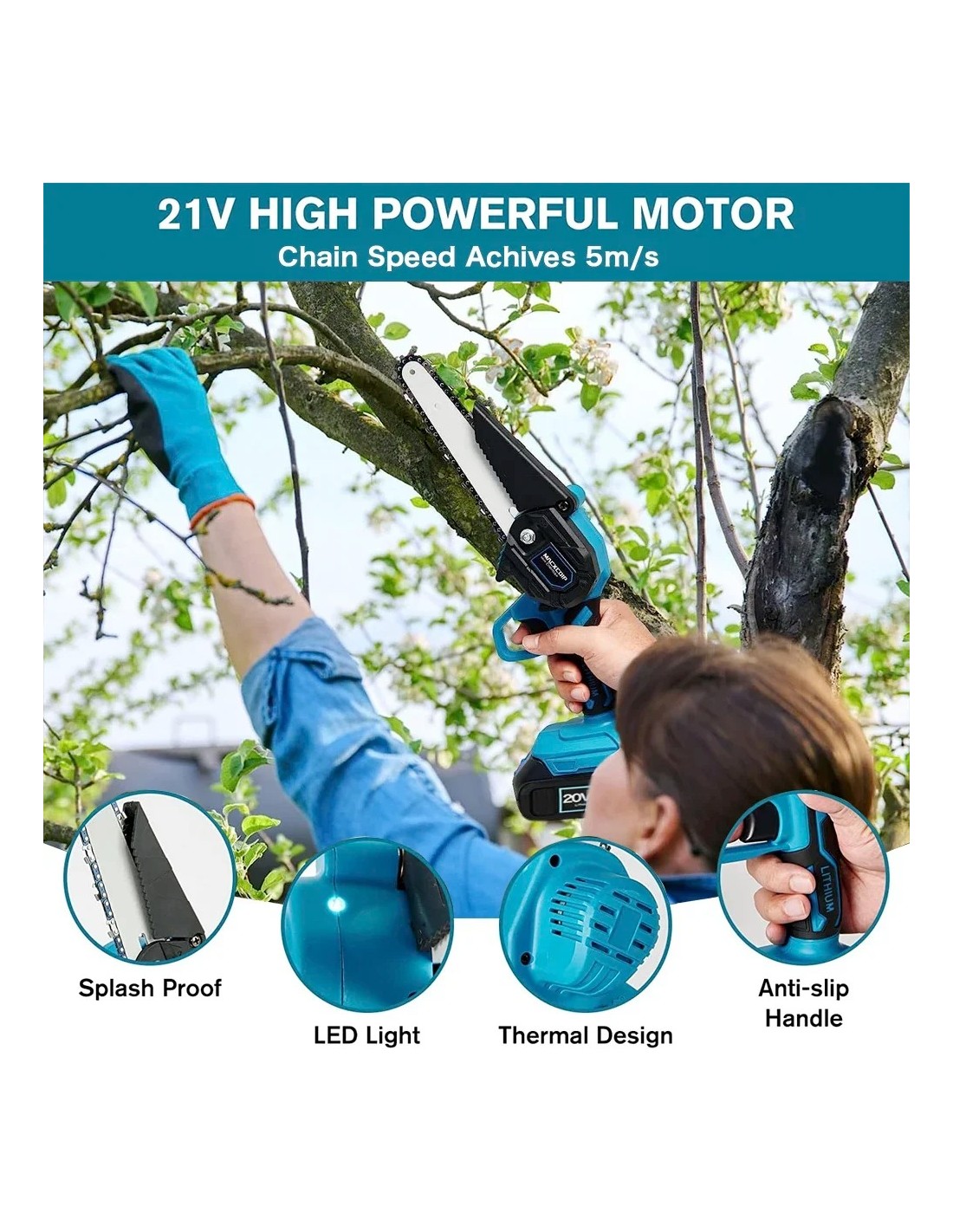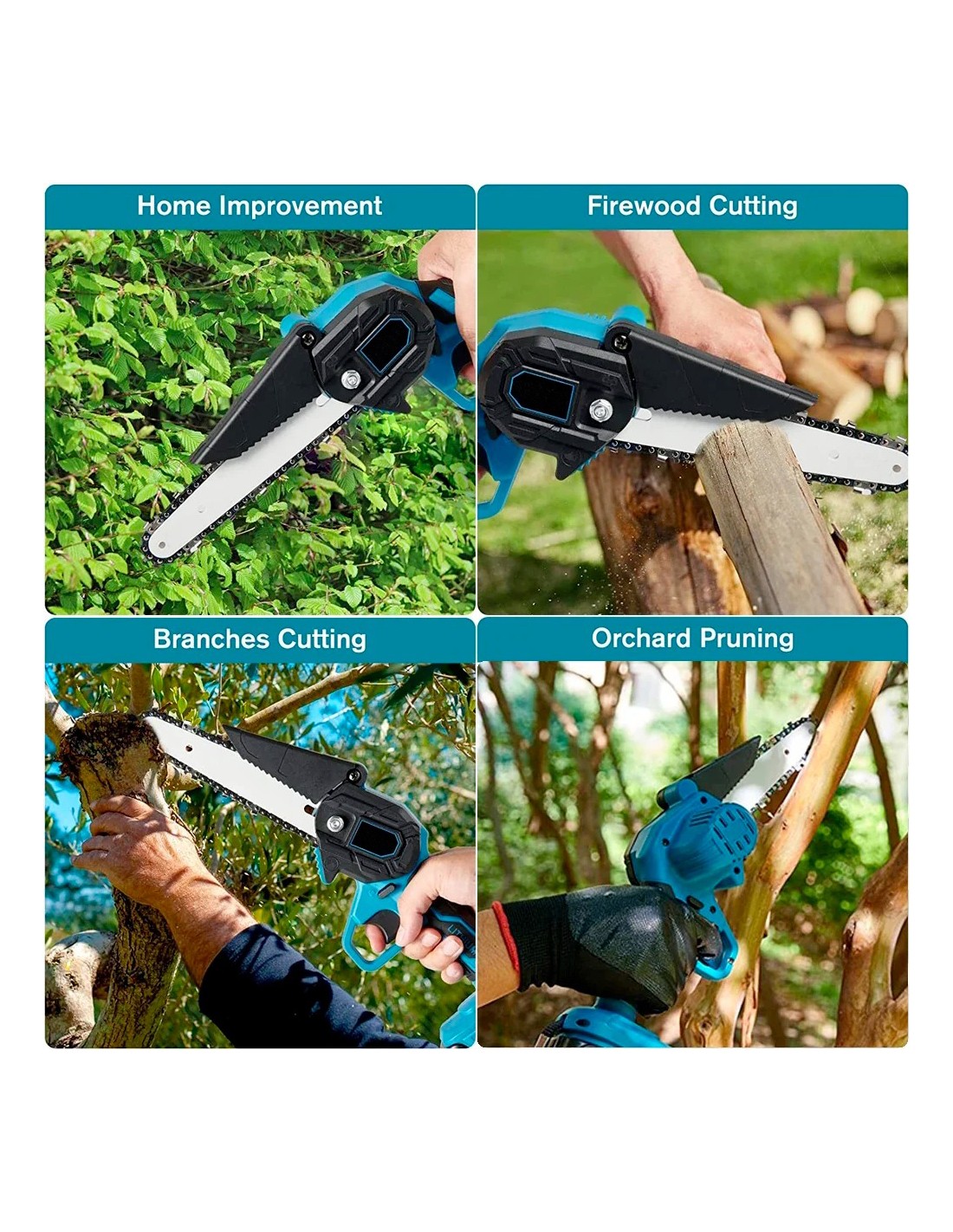Esta mini motosierra portátil de 4" combina potencia y comodidad para que cortes con total facilidad en huertos, bambú, leña o poda diaria.