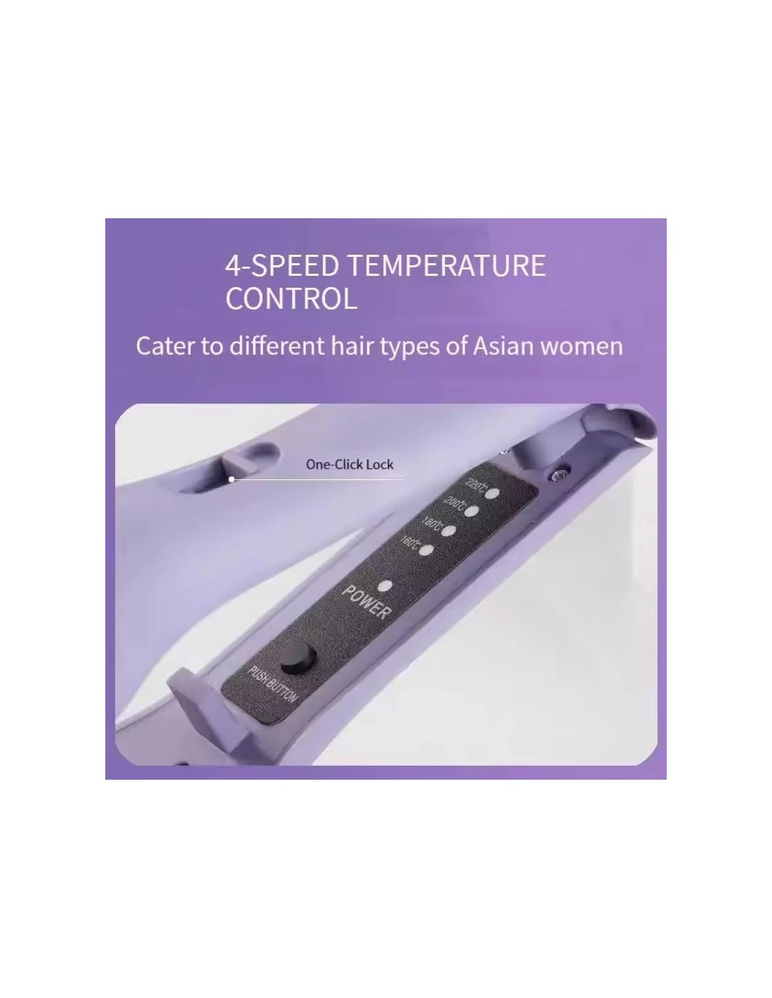 Ofrece 4 niveles de temperatura (160°C–220°C) para adaptarse a todo tipo de cabello. Su diseño antiquemaduras con silicona y forma en V garantiza seguridad y comodidad.