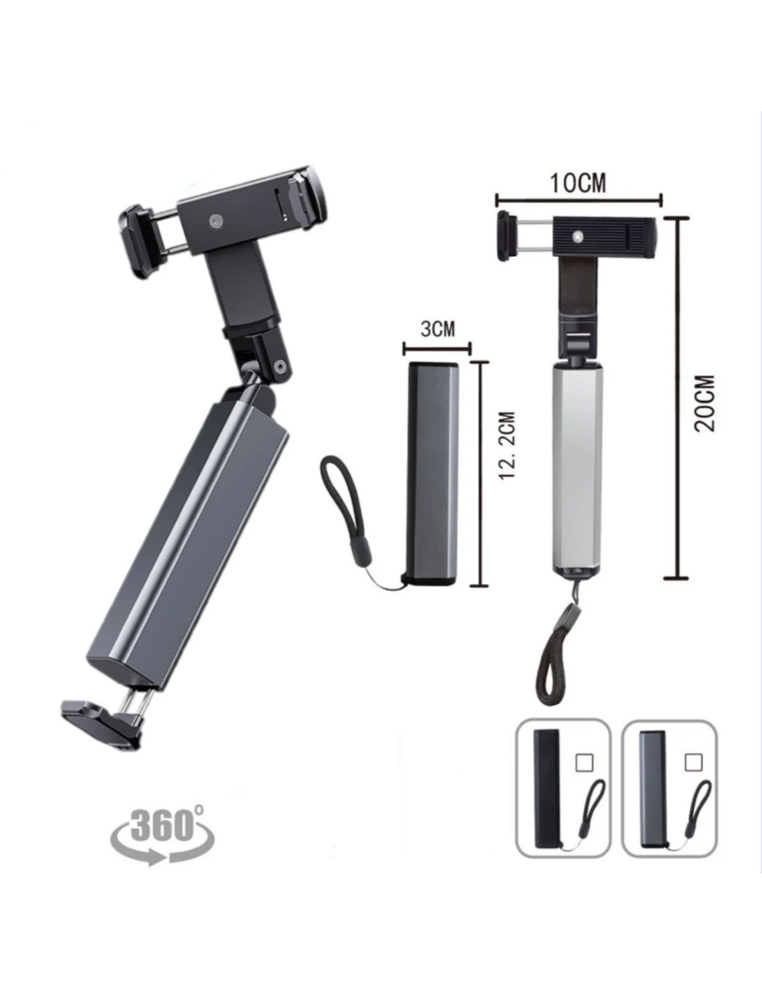 Função Q08: estabilização de vídeo / suporte para filmagem horizontal e vertical / controle remoto destacável.