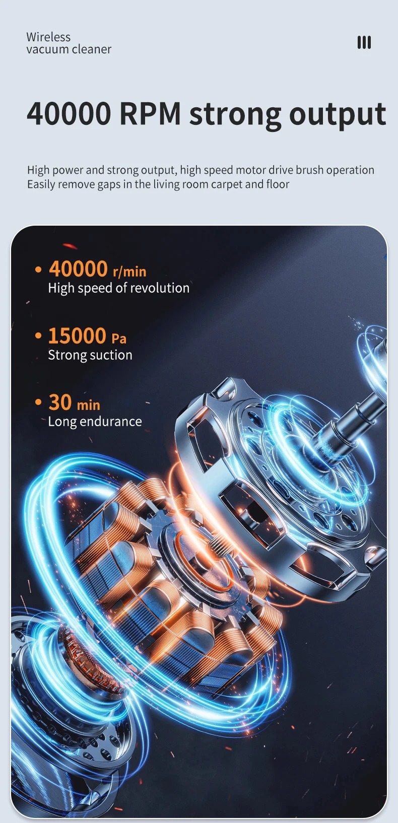 Para o seu uso verdadeiramente confortável, inclui um bastão retrátil que pode alcançar os cantos mais altos e complexos.